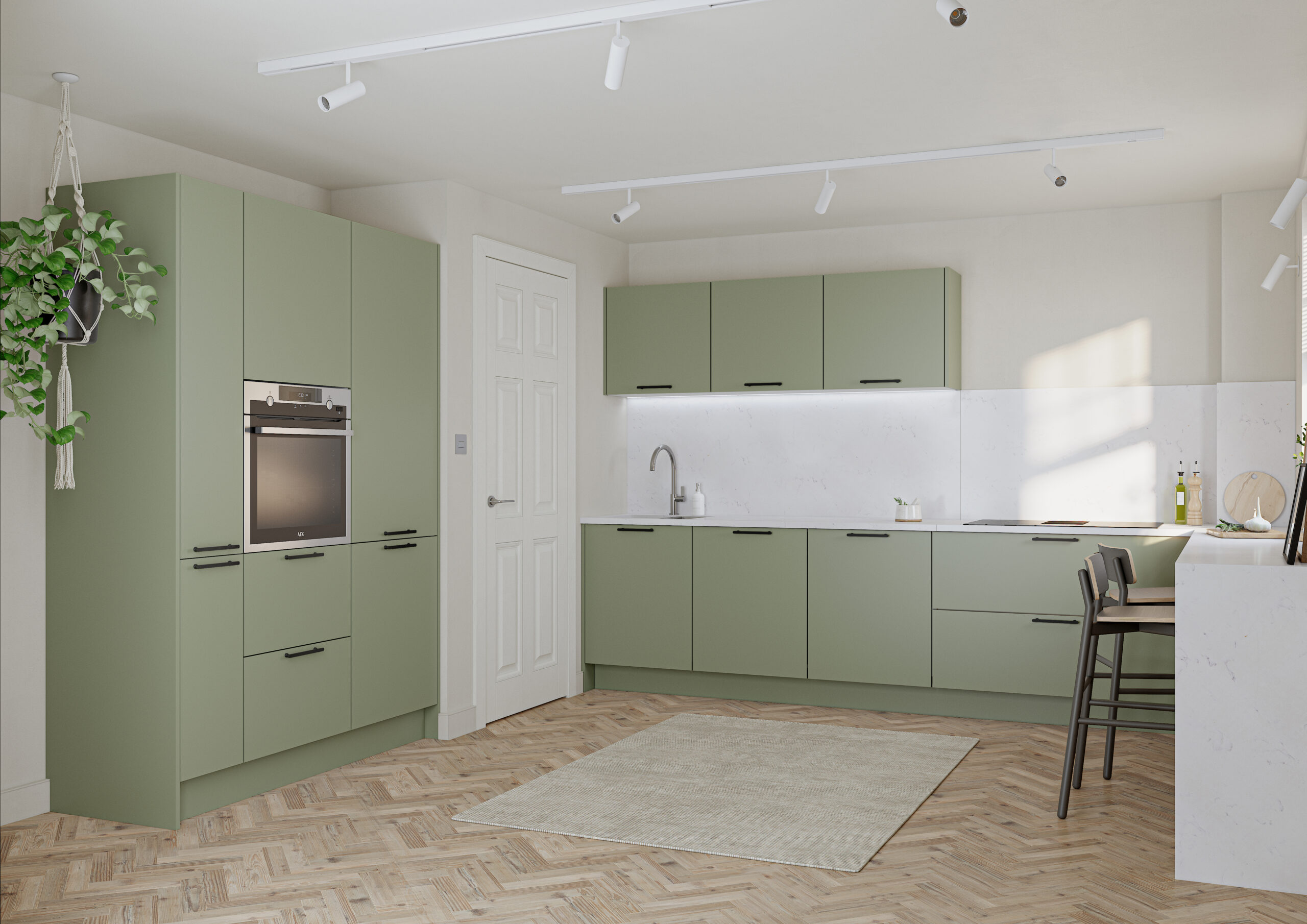 A pure slab door available in both matt and gloss finishes. This door can be personalised with your choice of complementary handle.